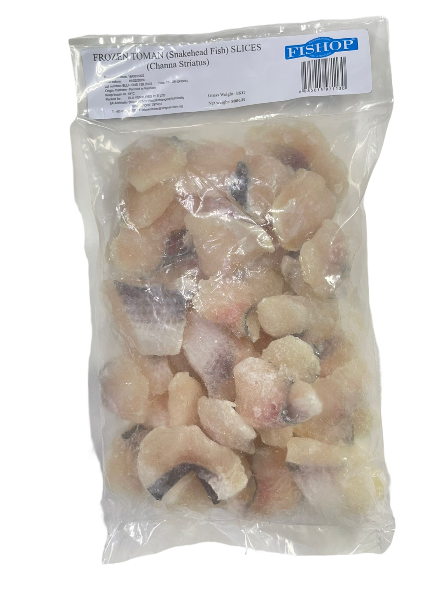 Fresh Tioman fish, sliced and frozen to preserve quality and flavor.